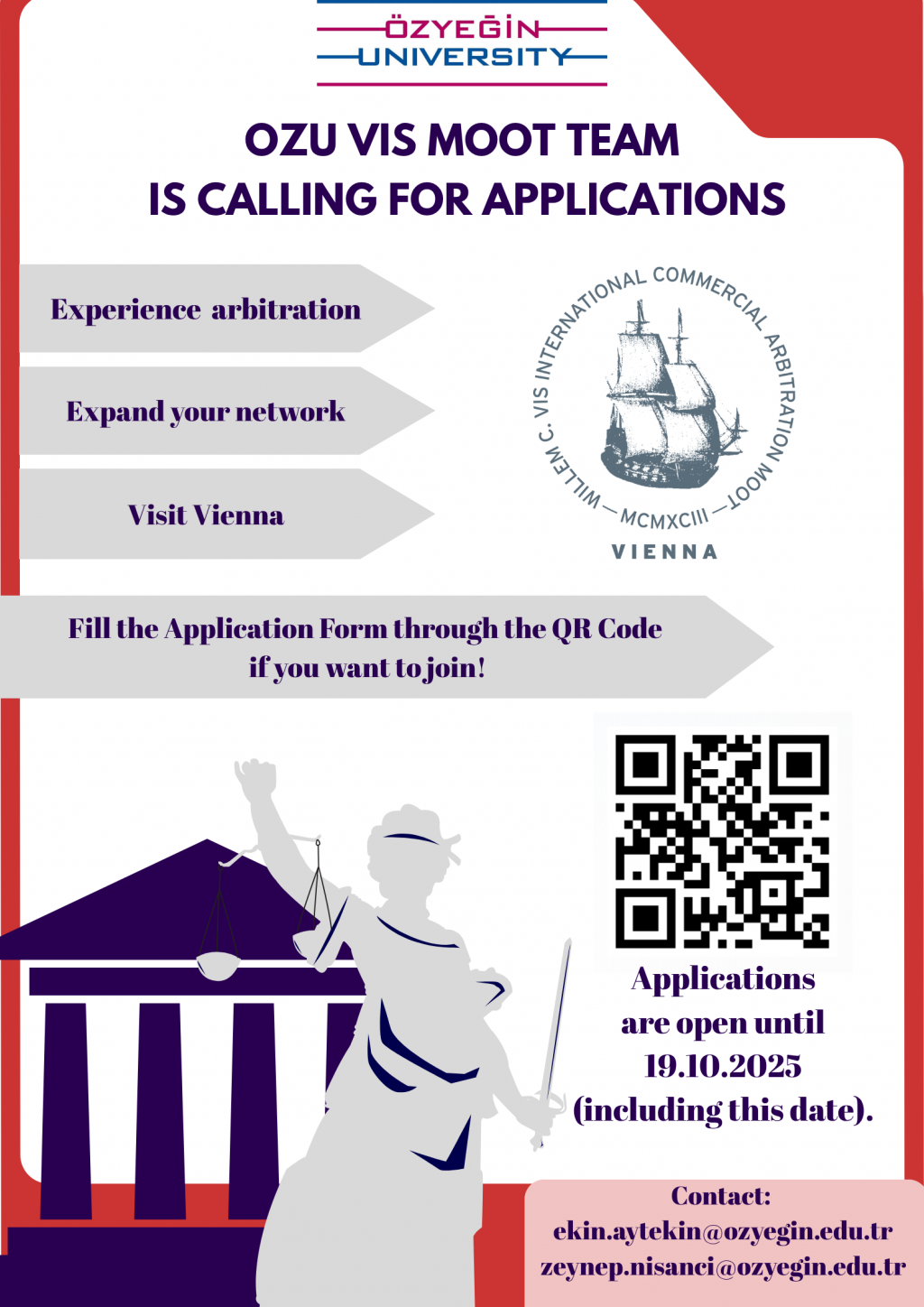 We are thrilled to announce that the Özyeğin University Vis Moot Team, which will represent our university in the prestigious Willem C. Vis International Commercial Arbitration Moot (Vis Moot), is still accepting applications!