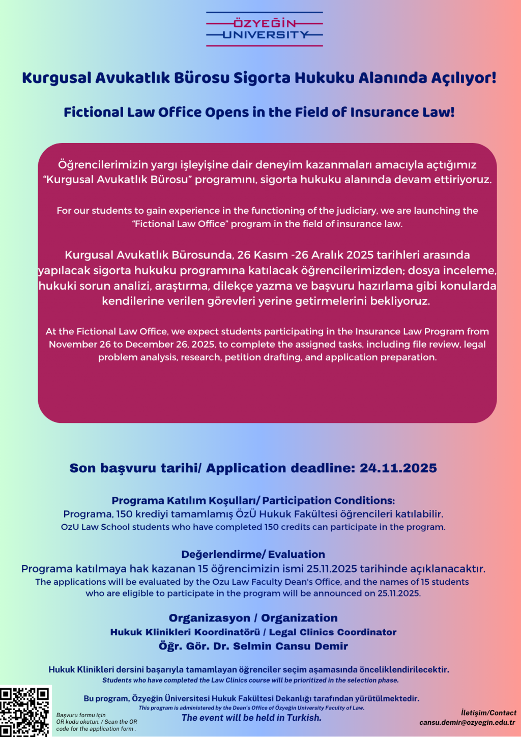 This program is carried out by the Dean’s Office of the Özyeğin University Faculty of Law.