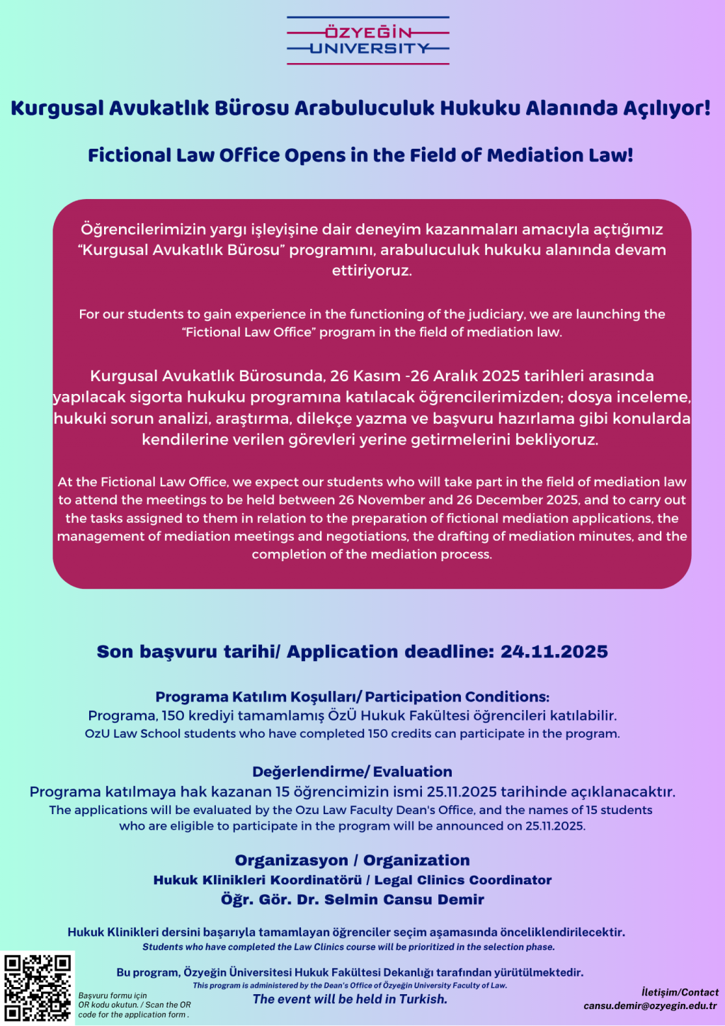 This program is carried out by the Dean’s Office of the Özyeğin University Faculty of Law.