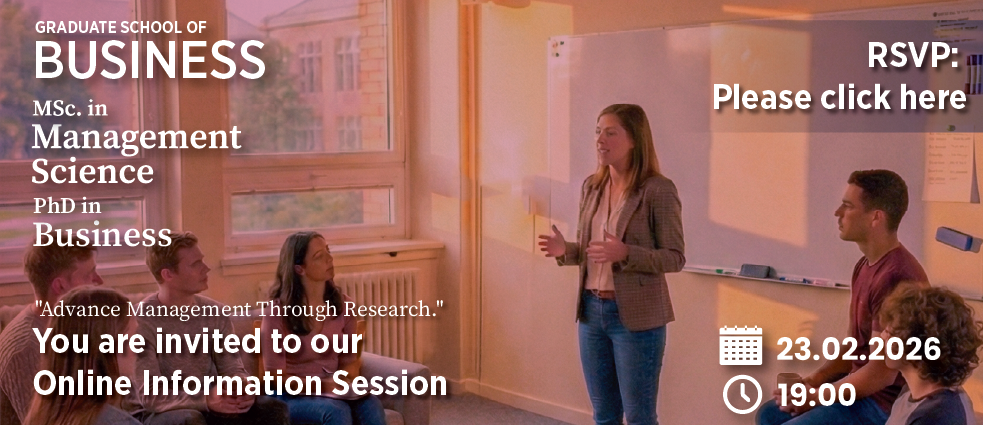 We would like to inform you that our Management Science with Thesis (MSCMS) Graduate and Ph.D. in Business Administration Programs Online Information Session will take place on Monday, February 23, 2026, at 19:00.