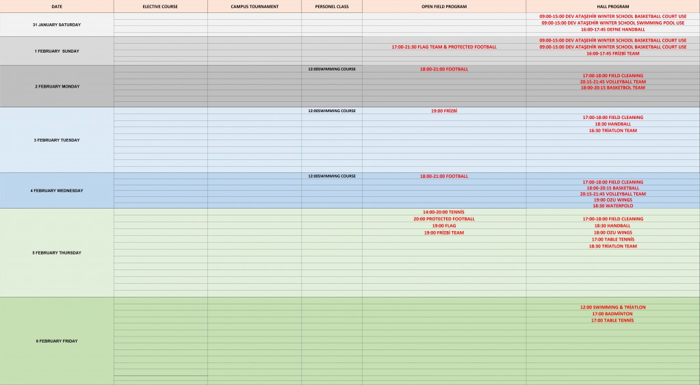 The Sports Center presents the Event Bulletin for the week of 31 January - 6 February for your information.