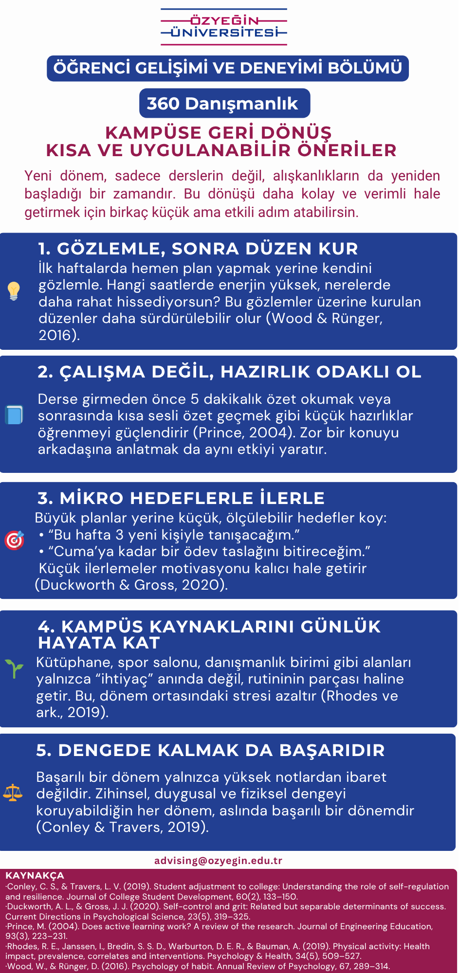 Kampüse Geri Dönüş - Kısa ve Uygulanabilir Öneriler